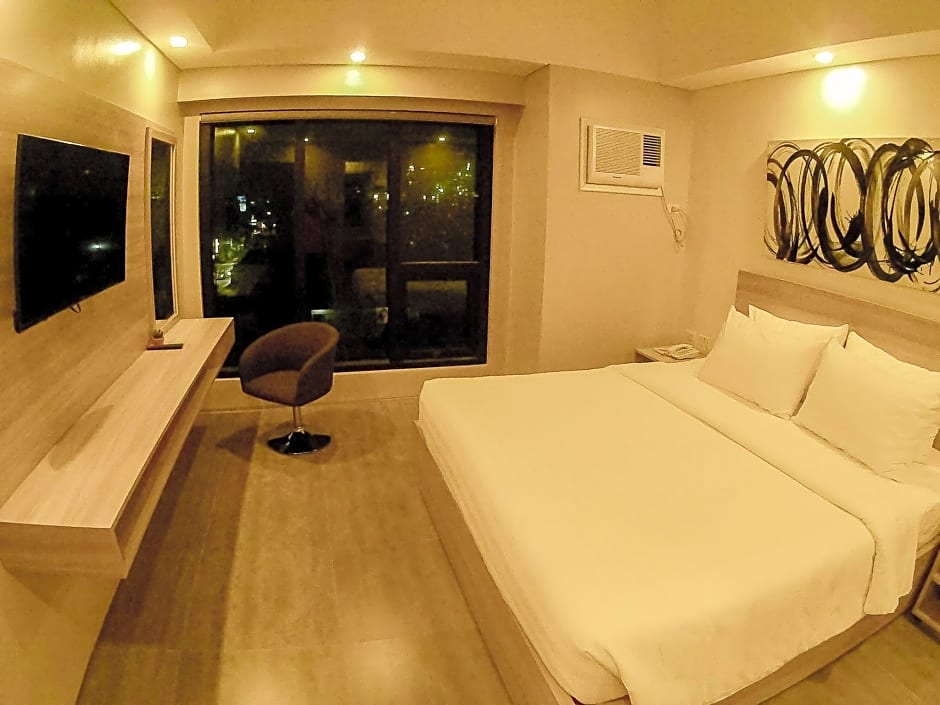 The quadruple room offers air conditioning, a wardrobe, a tiled floor, a flat-screen TV with cable channels, as well as city views. The unit has 2 beds.